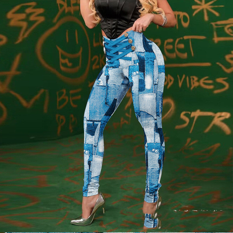 Women's Black Double-breasted Lace-up Hip-lifting Tights