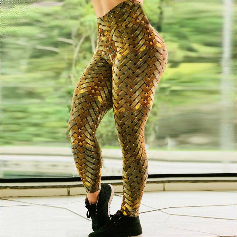 Woven Digital Print Slim High Waist Sports Leggings Yoga Pants